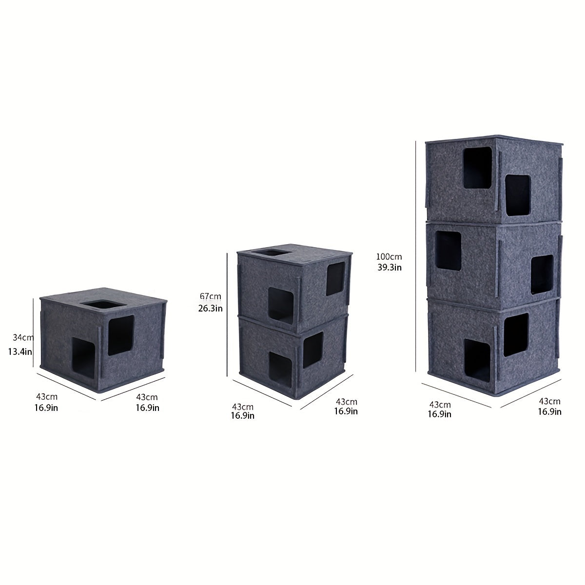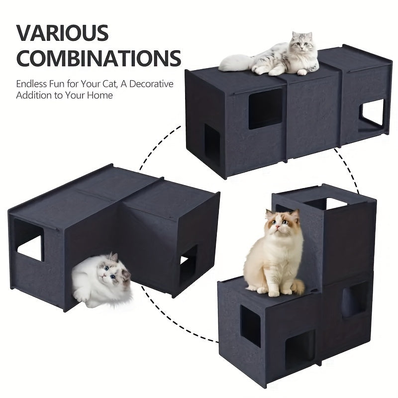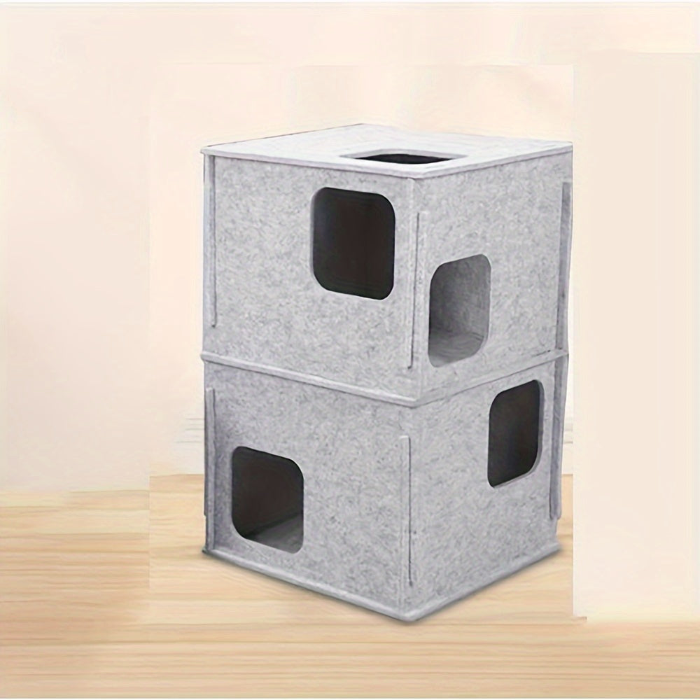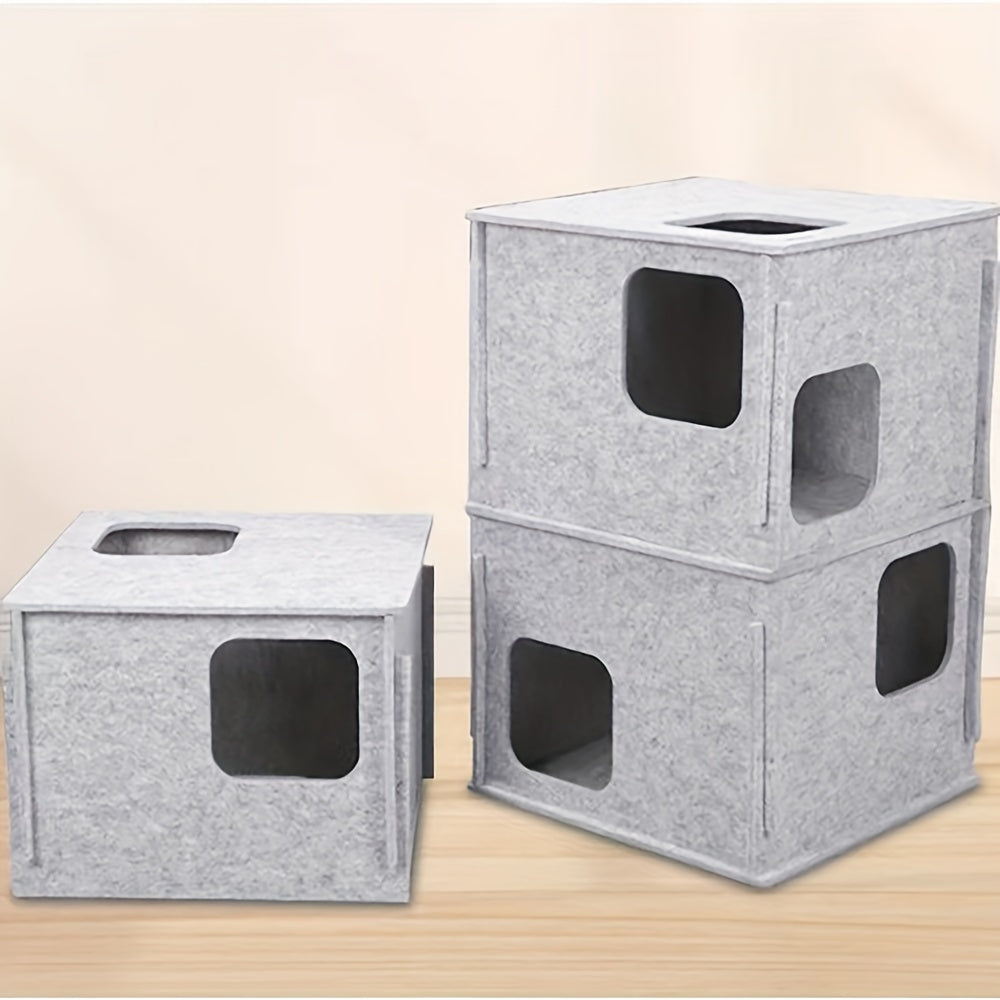This stackable felt cat cube house combines minimalist design with functional comfort for your feline companion. Crafted from durable felt material, each cube provides a cozy retreat while the stackable design allows you to customize configurations based on your space and cat's preferences. The lightweight construction makes rearrangement effortless, while the sturdy felt construction withstands regular use and scratching. Perfect for cats seeking privacy and security, this modular system adapts as your pet's needs evolve. Available in neutral tones that complement any home décor, it's an intelligent storage solution that doubles as enriching cat furniture.