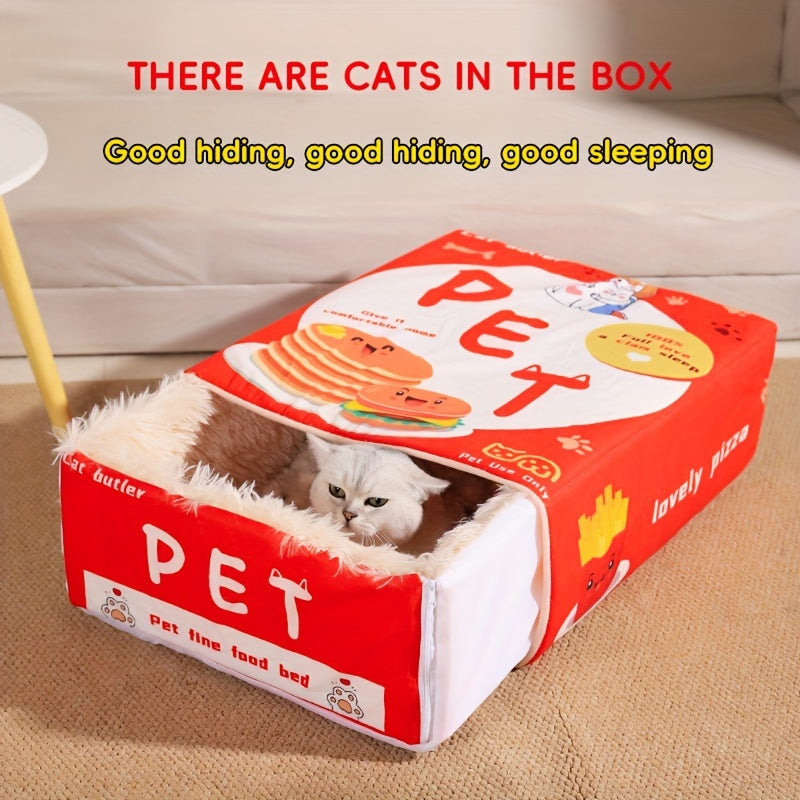 Designed for feline comfort, this innovative cat bed combines a cozy enclosed space with practical functionality. The semi-closed design provides security while allowing easy access, perfect for cats seeking a safe retreat. Its unique biscuit-shaped silhouette adds charm to any room while the detachable cushion pad ensures convenient cleaning. Crafted from soft, durable materials, this all-season bed maintains comfort year-round. The pull-out rectangular mat offers flexibility for different spaces, making it an ideal choice for multi-cat households or those wanting versatile placement options. Your cat will appreciate the snug, supportive environment this thoughtfully engineered pet bed provides.