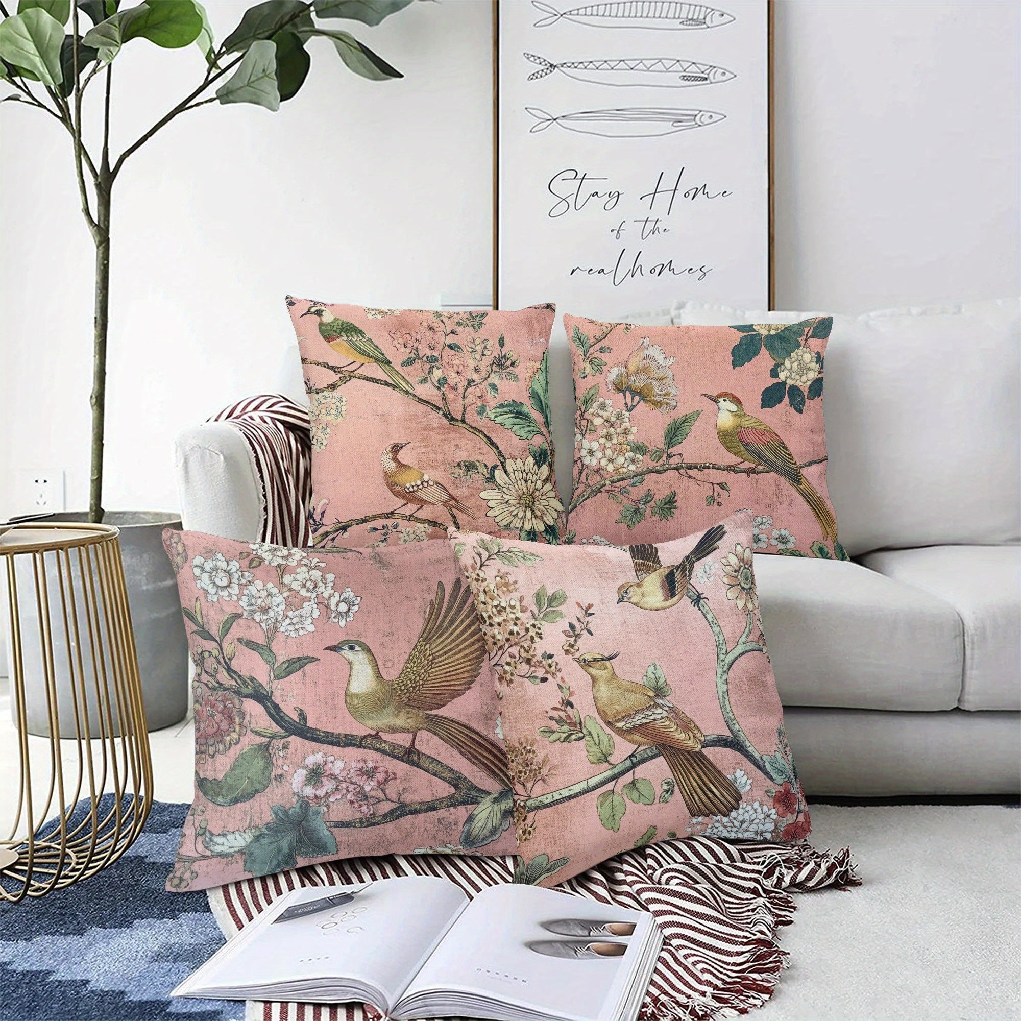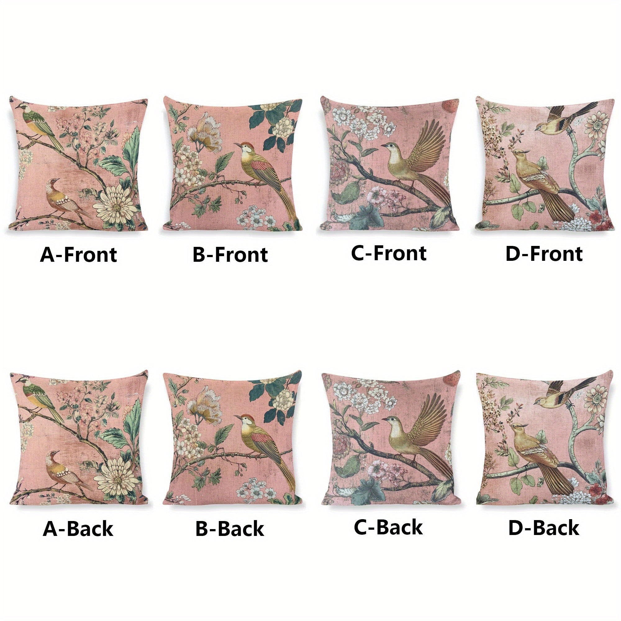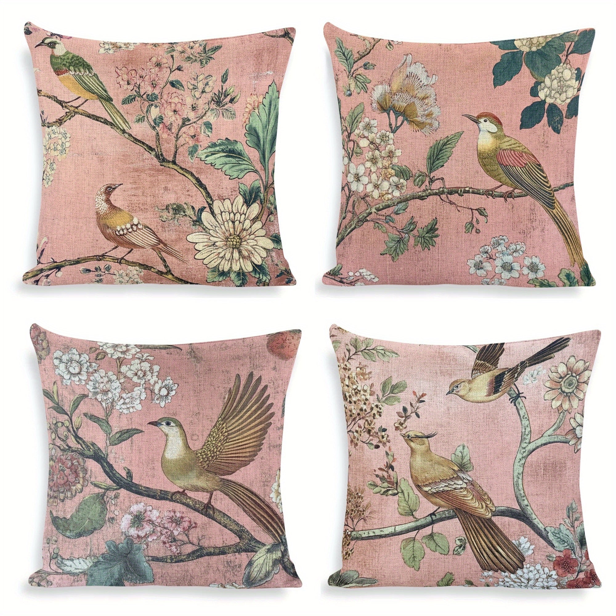 4pcs, 45.72x45.72cm, Vintage Bird Flower Mural Throw Pillow Cover, Dual-Sided Print, Home Sofa Decoration